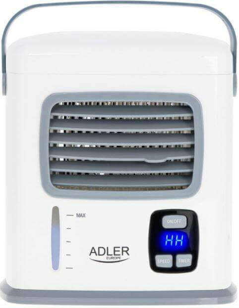 Jestliže hledáte skutečně mobilní přístroj pouze pro sebe, kde vám nebude překážet žádná hadice ani kabel, dobrou volbou je kompaktní ochlazovač vzduchu Adler AD 7919, který je napájen z USB portu nebo čtyřmi AA bateriemi. Ochlazovač se vám bude hodit při práci nebo relaxaci, protože vzduch chladí, čistí a zvlhčuje na menším prostoru. Výhodou je ale jeho mobilita, lehkost i tichost.