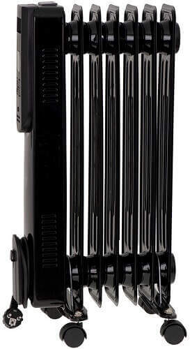 Optimální volbou je sedmižebrový olejový radiátor Camry CR 7812 s výkonem až 1500 W. Jeho elegantní černé tělo je nenápadné a hodí se jak do kanceláře, tak třeba na chalupu. Teplotu lze regulovat v rozmezí 15–35 °C, aniž byste museli řešit výběr výkonu, ten se nastavuje automaticky. Radiátor se jednoduše ovládá na panelu s LED displejem nebo pomocí dálkového ovládání. Velkým benefitem je časovač do 12 hodin i ochrana proti přehřátí.